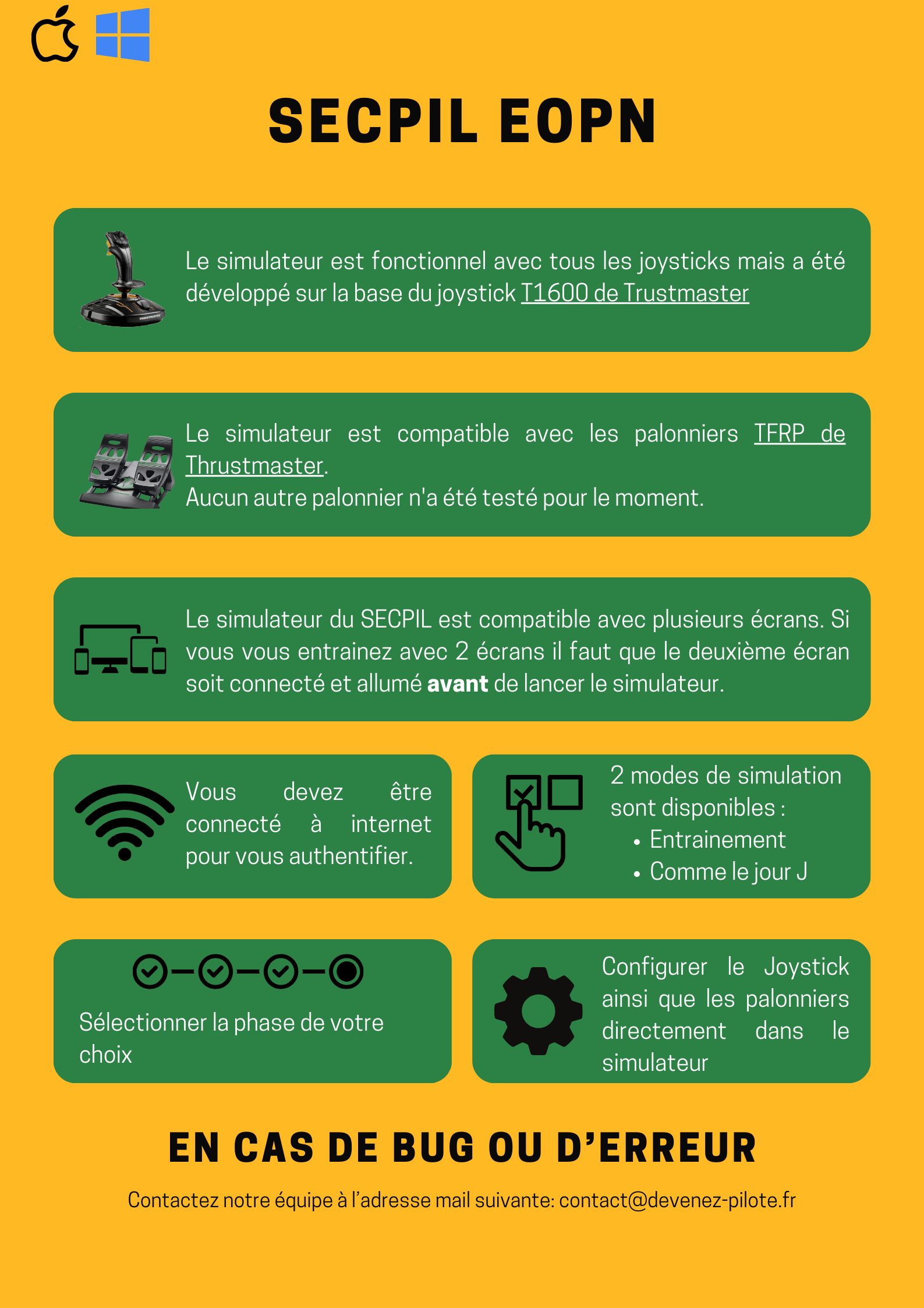 Le simulateur du SECPIL EOPN, comme si vous y étiez. Nous avons spécialement développé pour vous le simulateur EOPN du SECPIL, afin de vous permettre un entraînement efficace. Il est disponible en téléchargement pour MAC et WINDOWS et peut fonctionner sur un ou deux écran(s).